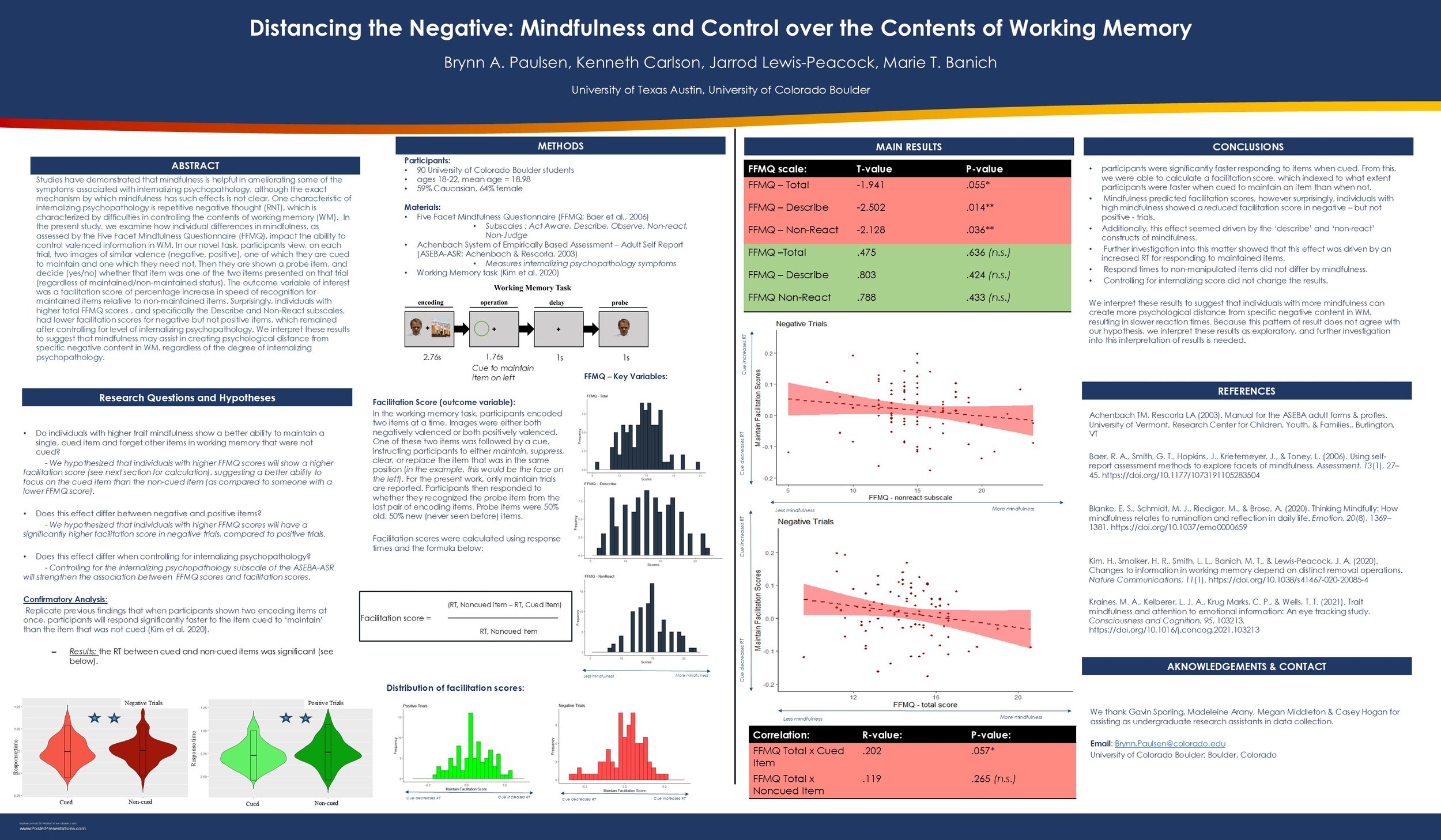 At the 2023 meeting of the Mindfulness Mechanisms and Methods Meeting (M4), I presented new findings from my research which examined how mindfulness relates to control over thoughts in working memory. Using a memory task with emotional faces, we found that people with higher mindfulness — especially skills like “describing” and “nonreactivity” — were better at letting go of unwanted negative information. The findings suggest that mindfulness may help create distance from difficult thoughts, offering insight into its role in mental health.